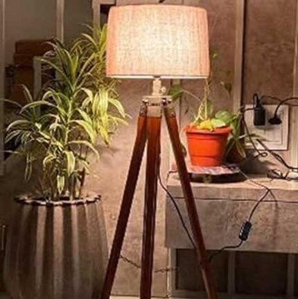 Teak wood tripod floor lamp