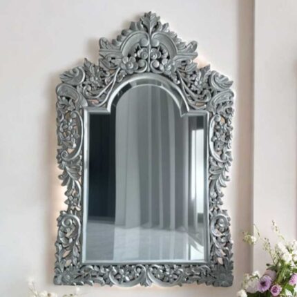 silver carved mirror